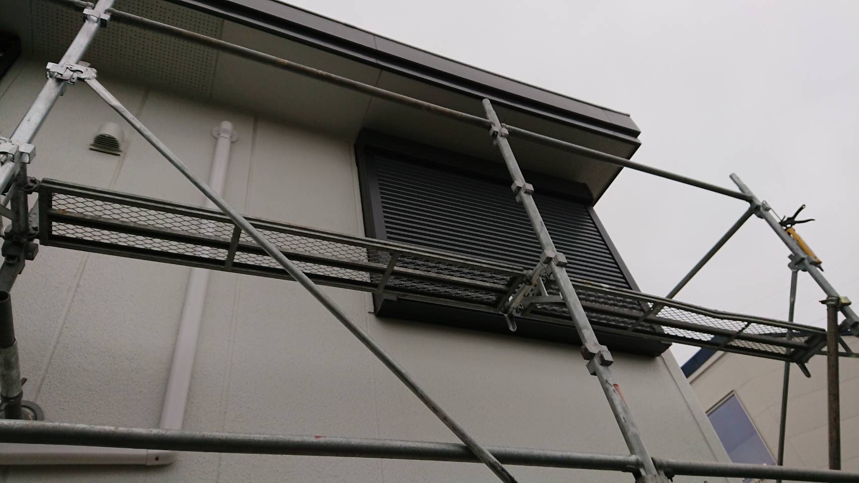 戸建て住宅の2階洋室の腰窓に強風対策として後付シャッターを設置。